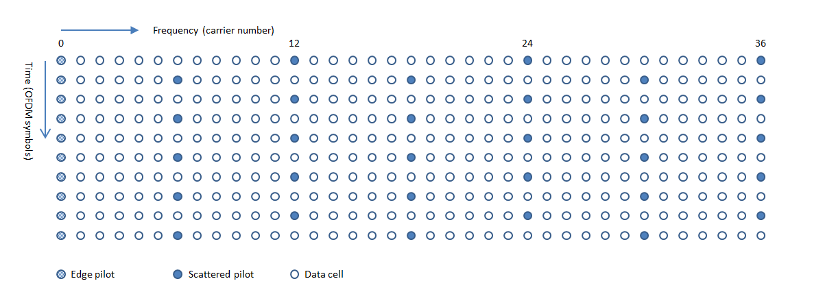 Required carrier to noise ratio (CNR) also depends on the selected pilot pattern. A denser pattern requires a higher CNR than those with a lower density. If the CNR is a dominant factor then lower density patterns, such as PP6 and PP7, should be considered.
